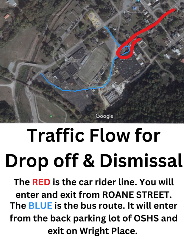 3. Bus patterns and car rider patterns will be the same for the middle and high school. This means that high school students who are car riders must report to the cafeteria for dismissal. Their name will be called and they will load the same as the middle schoolers.